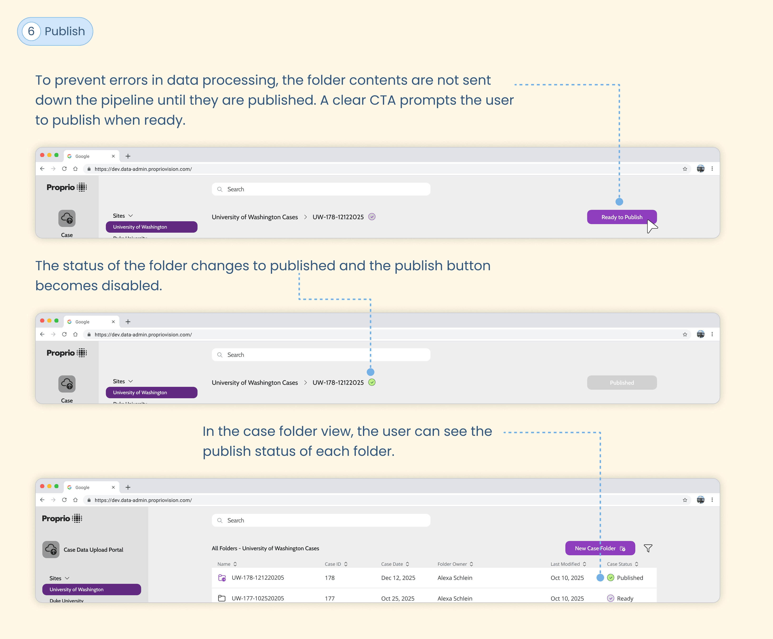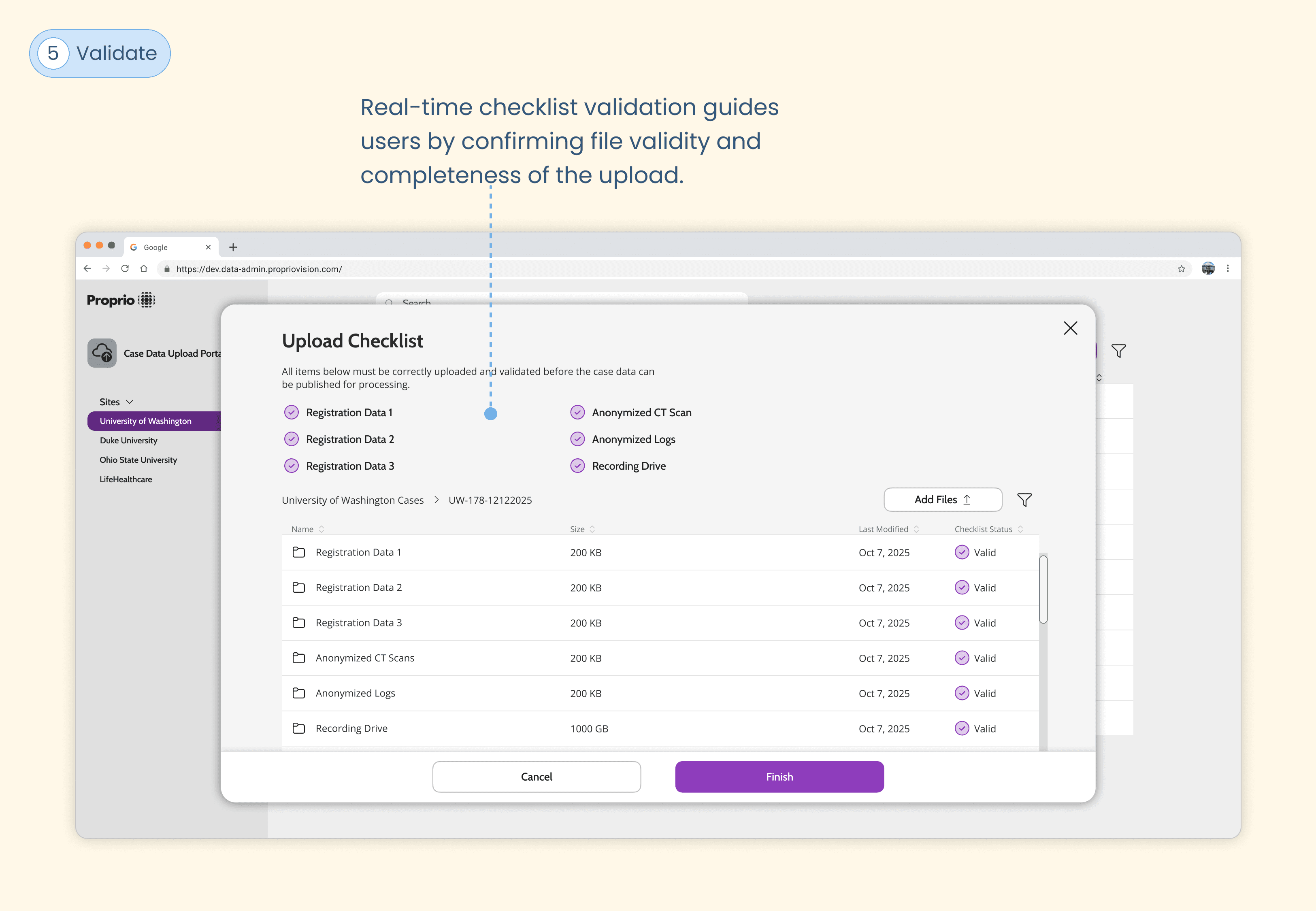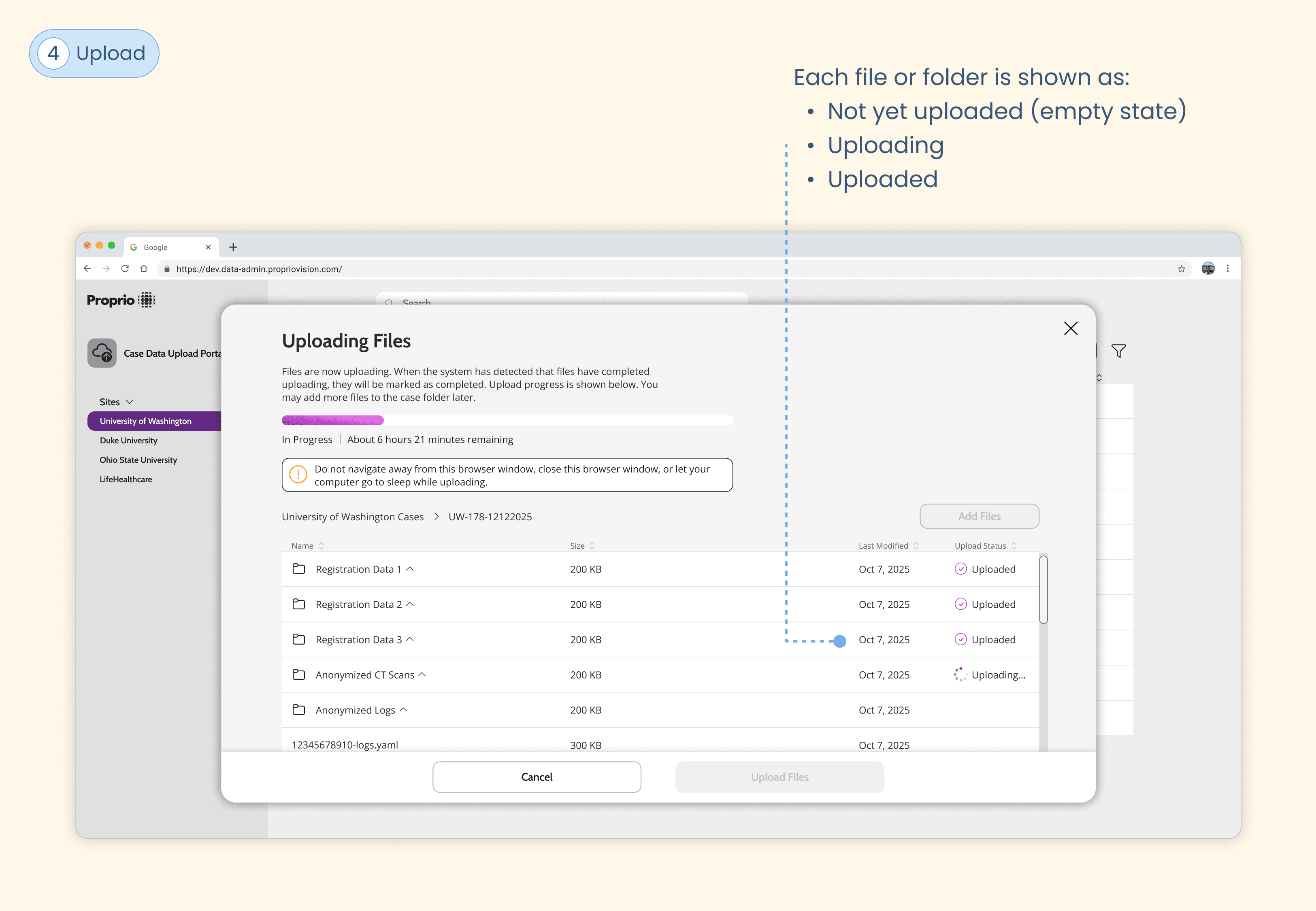 An engineer created a proof of concept for a web app to upload the case data to AWS. I jumped in as the lead designer to identify areas for improvement, rethink the upload workflow, and defined upload success.