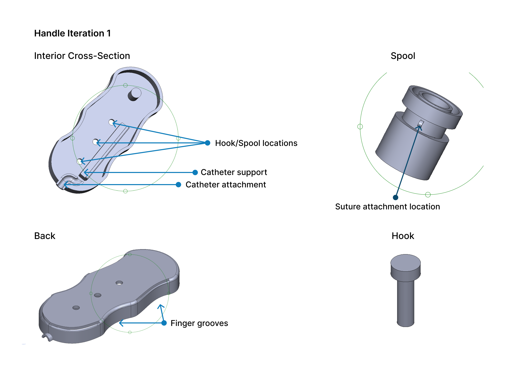 Following testing, we iterated on the handle to improve comfort and suture attachments to decrease outer diameter.