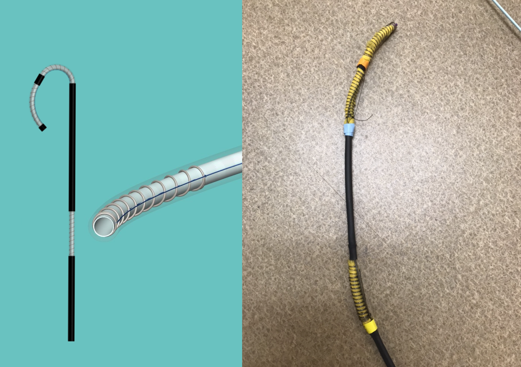 My biomedical engineering capstone team worked with the Interventional Radiology department at Emory University Hospital Midtown in Atlanta, GA to develop a novel catheter that can adjust tip shape in reaI-time. Inspired by a Slinky, the catheter tip can bend and adjust to the curves in a patient's vascular system, resulting in a snug fit and greatly reducing the amount of time radiologists have to spend adjusting catheters. The design reduces the number of catheter exchanges, wasted product, procedure lengths, costs, and patient discomfort.