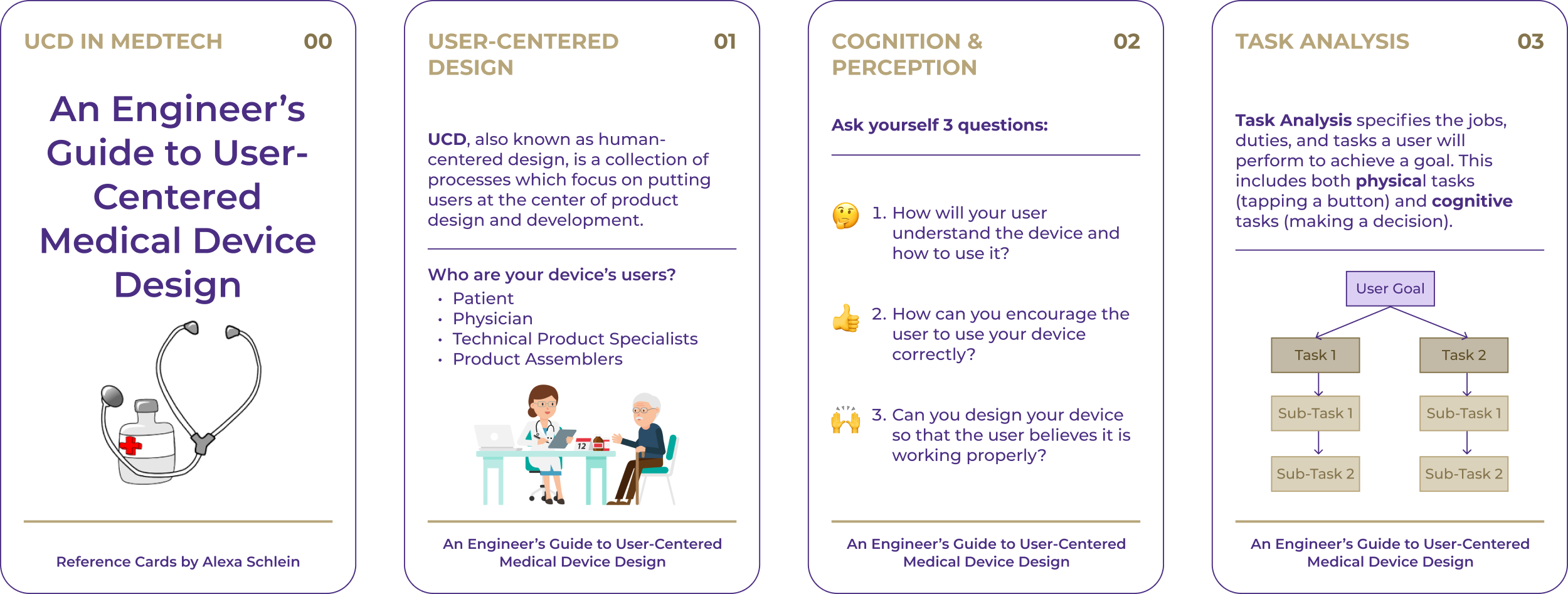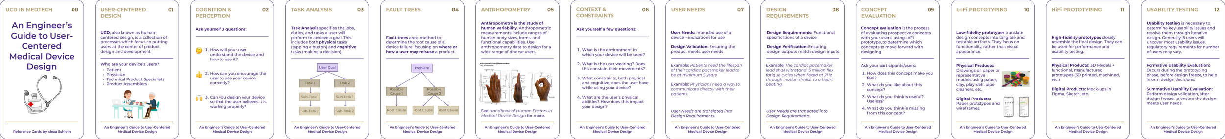 The goal of this card set is to provide MedTech R&D Engineers a reference guide for user centered design, such that they can easily implement UCD in their own workflows.