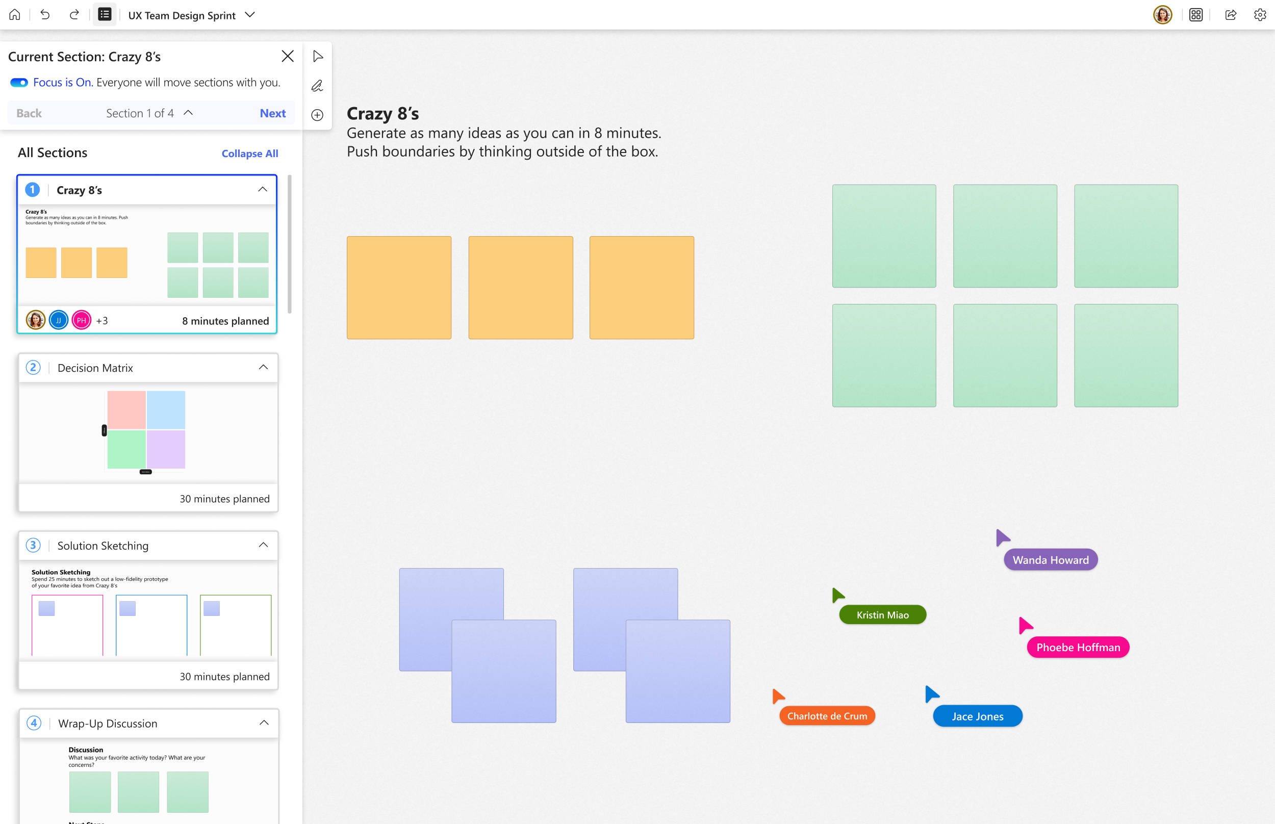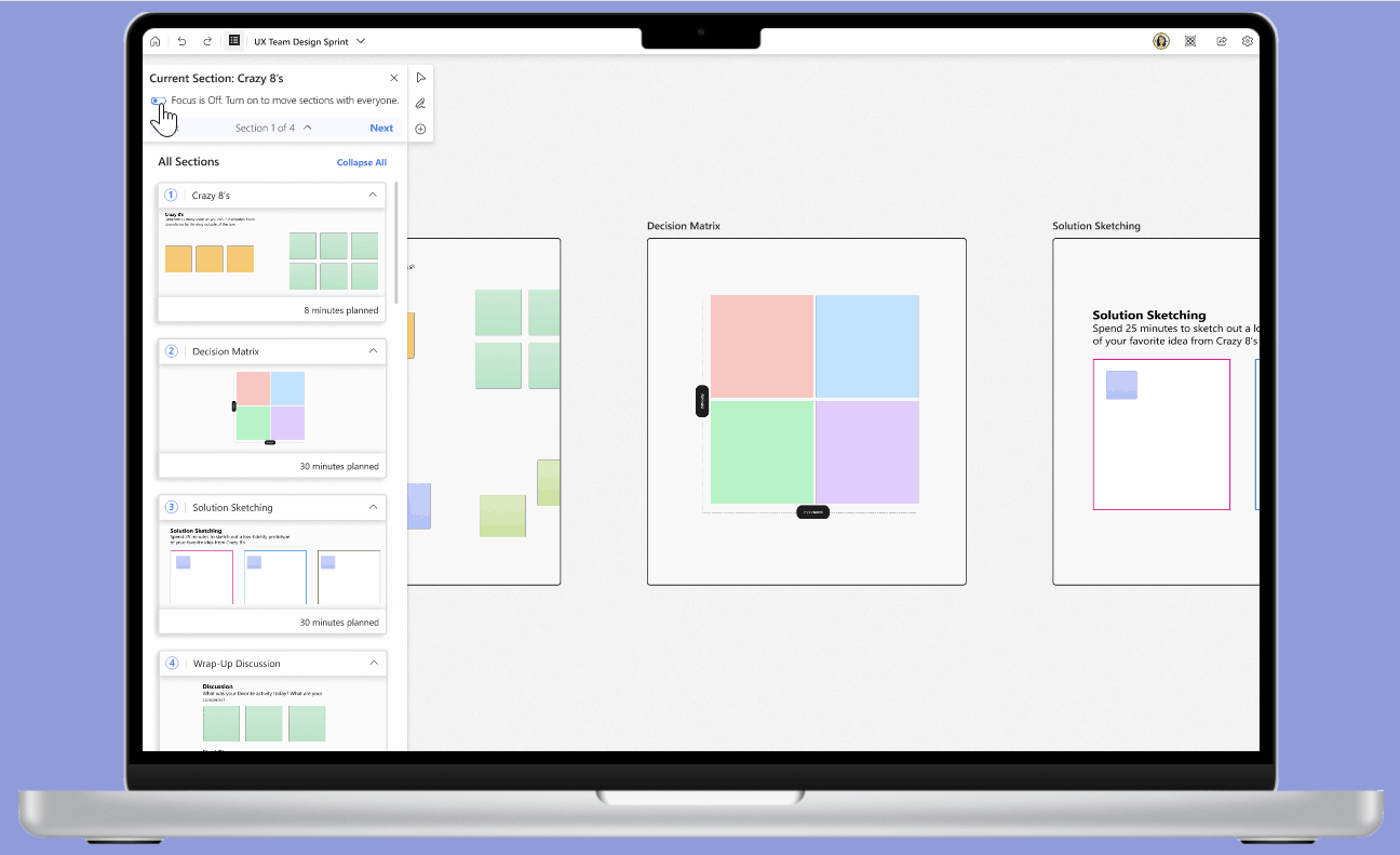 We provided additional clarity and functionality – The facilitator can spotlight a specific section of the canvas by turning Focus Mode on.