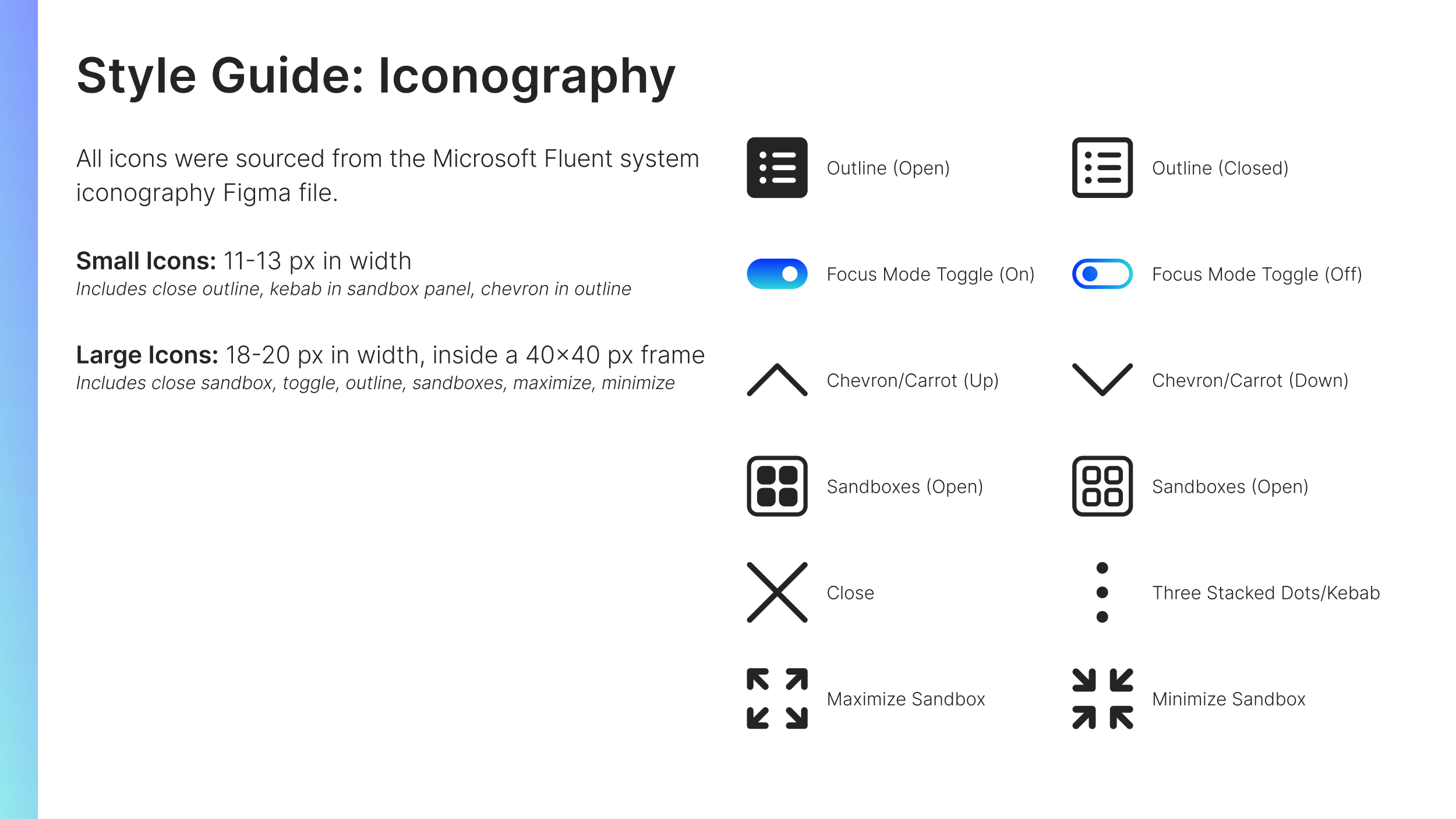 ✱ All icons were sourced from the Microsoft Fluent system iconography Figma file.